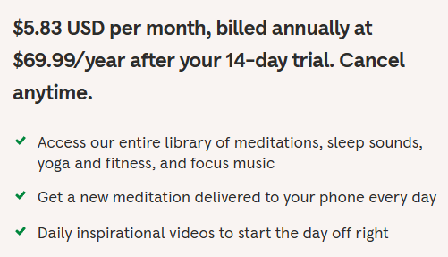 기본 명상 프로그램은 무료로 제공되지만, 고급 콘텐츠는 유료 구독이 필요합니다.