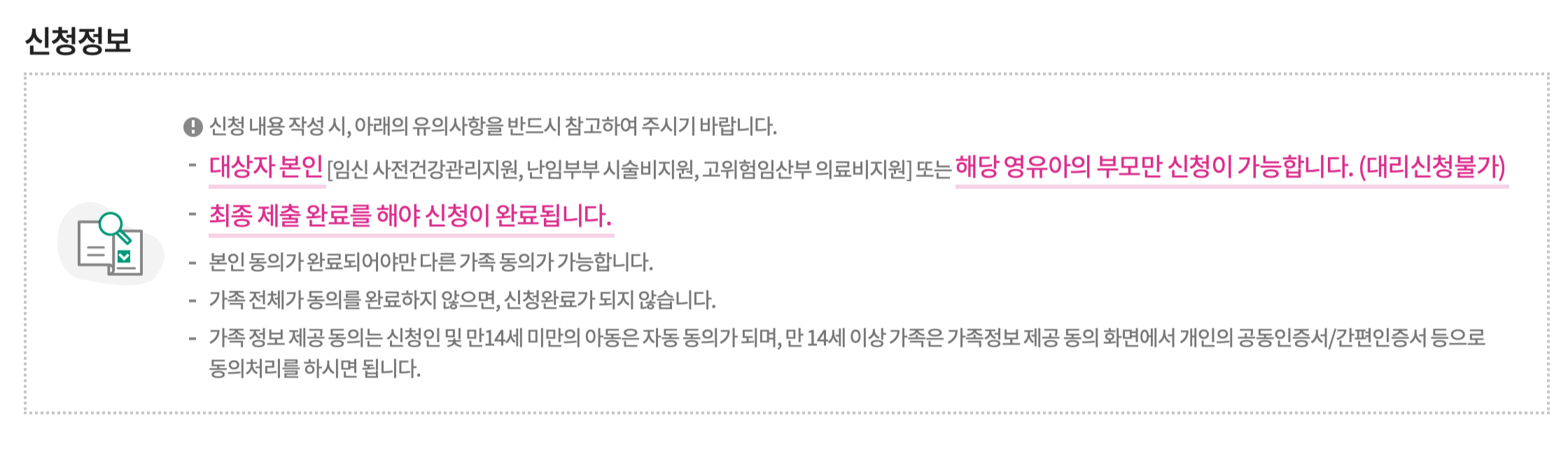 신청 시 유의사항 안내문