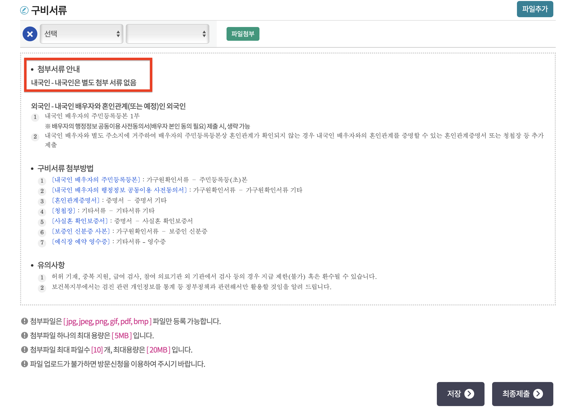 *내국인은 별도 첨부 서류 없음