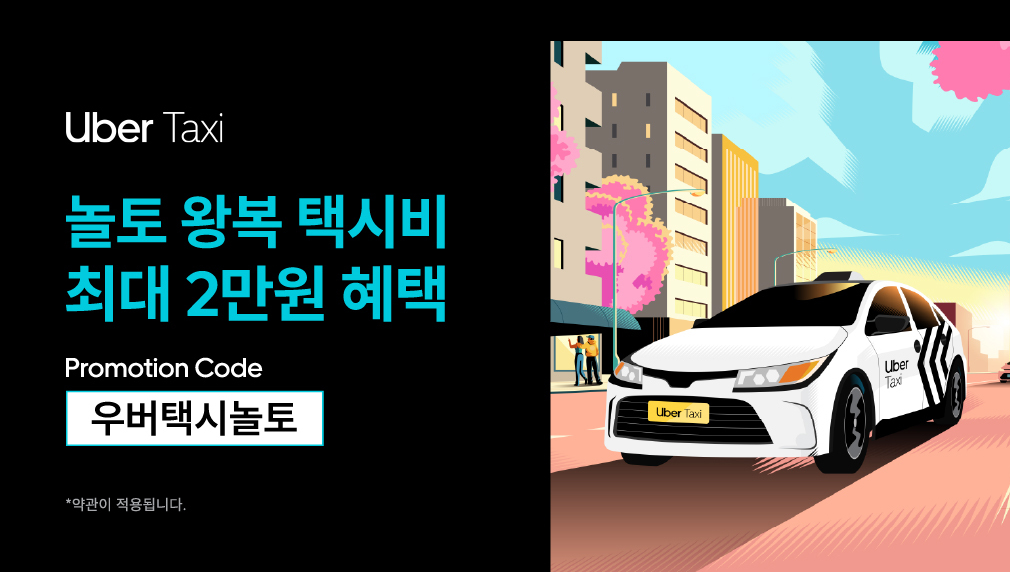 - 참여 방법: Uber 앱 → 계정 → 지갑 → 프로모션 코드 추가 → '우버택시놀토' 입력